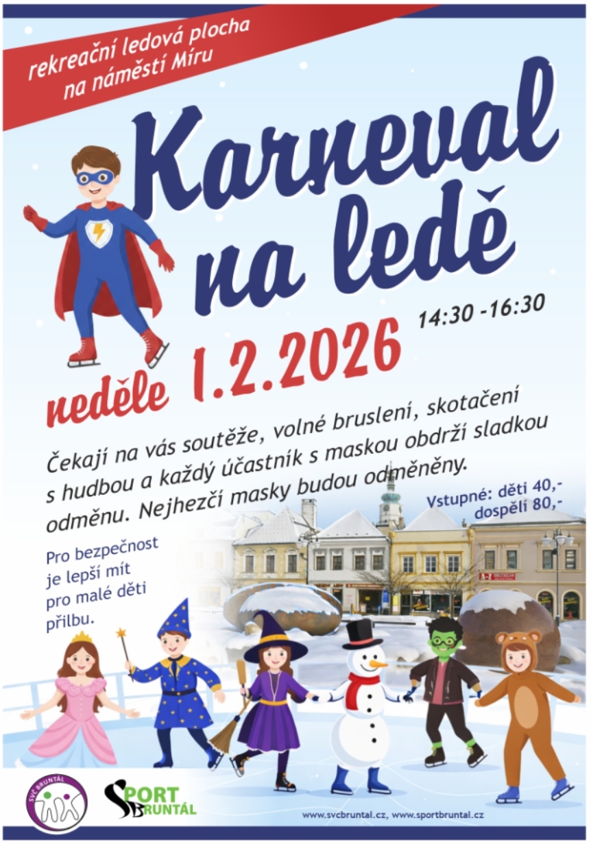 Srdečně vás zveme na tradiční Karneval na ledě, který se uskuteční 1. 2. 2026 od 14:30 do 16:30.